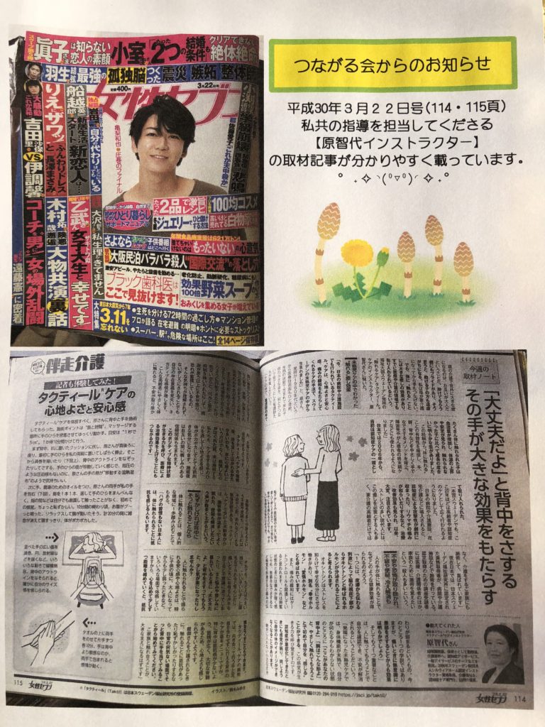 「女性セブン」平成30年3月22日号(114.115頁)にタクティール®ケアの記事を発見‼