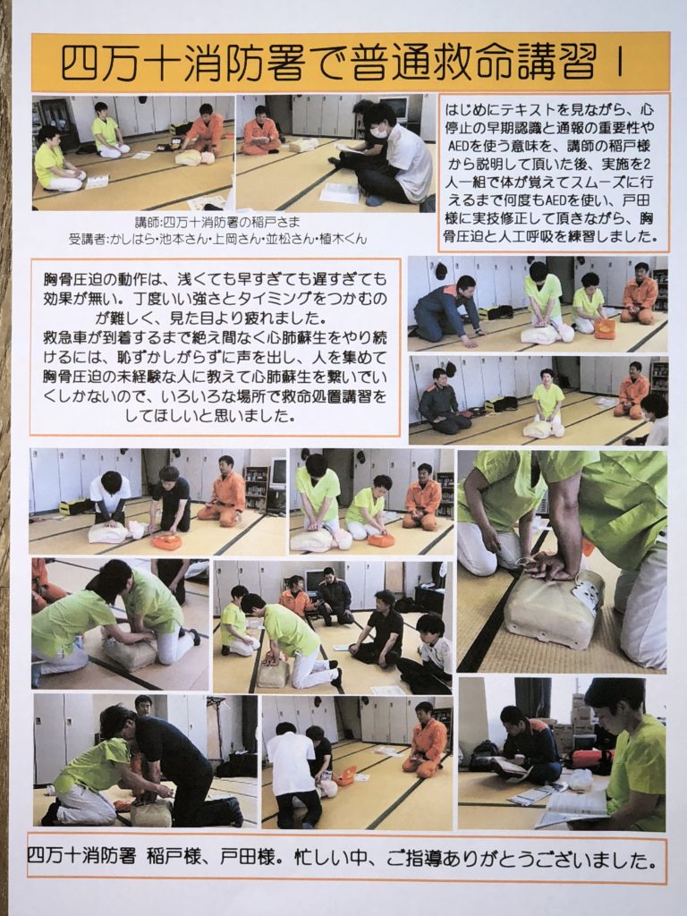 5月12日土曜日。高知県四万十市、四万十消防署で「普通救命講習Ⅰ」に参加しました。