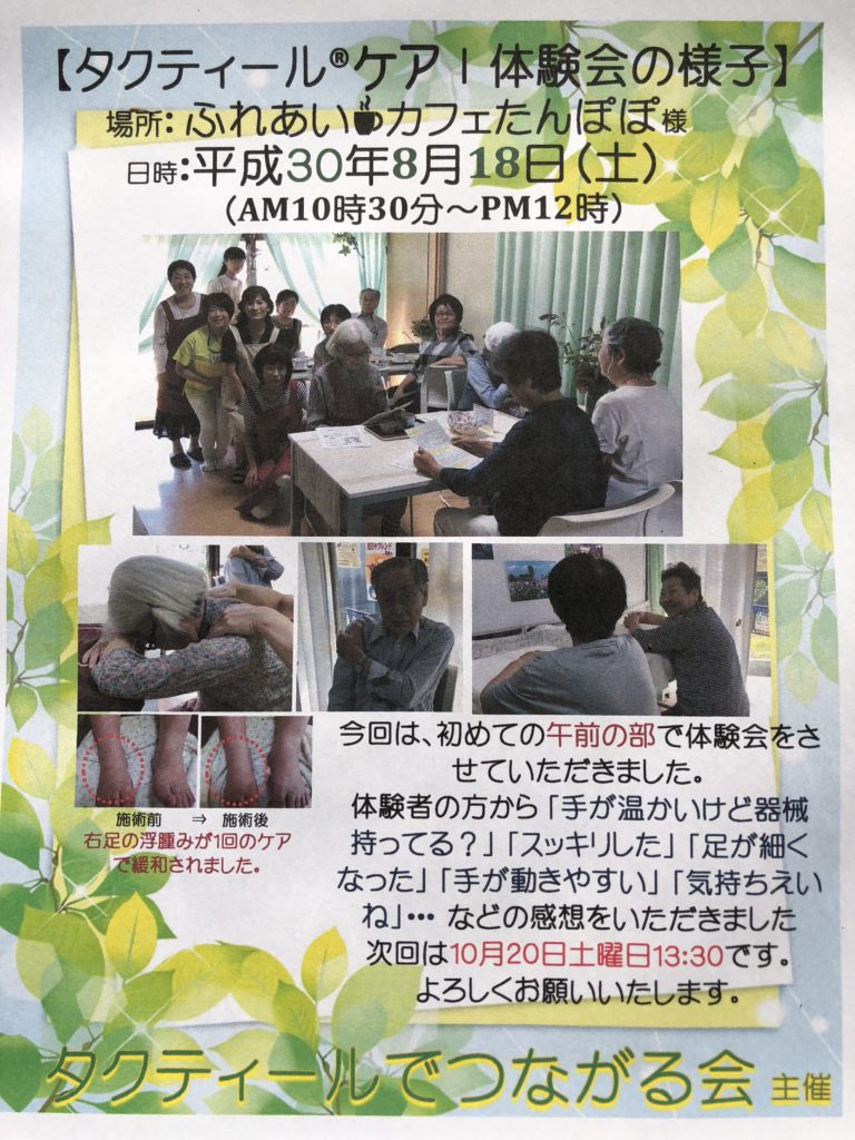 ふれあいカフェ☕たんぽぽ様で「タクティール®ケア」体験会