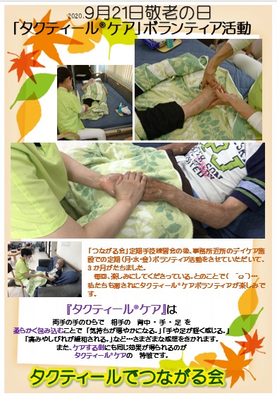 つながる会 は タクティール®ケア を ボランティアで行う団体です